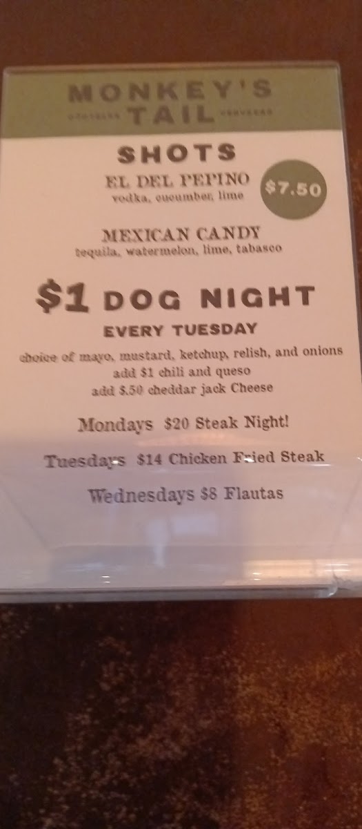 Don’t miss their Steak Night, which offers a hearty meal of steak, street corn, and baked potato for just $25. Patrons consistently praise the quality of both food and service, with friendly bartenders enhancing the experience further. Whether it’s enjoying a chilled draft beer or savoring a refreshing margarita on the patio, Monkey's Tail promises a delightful time. The welcoming vibe makes it perfect for solo guests or large groups. Discover a place where delicious food and great company unite!